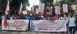 মঙ্গলবার, ঠিক দুপুর বারোটায়, কলেজ স্কোয়ার বিদ্যাসাগর মূর্তির উদ্যানের সামনে, অল ইন্ডিয়া, এ আই ডি এস ও ডাকে ছাত্র সমাবেশ করলেন এবং মিছিল করে তারা শ্যামবাজার পর্যন্ত রাজপথ দখল করলেন। প্রায় ১৪ থেকে ১৫ হাজার ছাত্রছাত্রী এই সমাবেশ ও মিছিলে অংশগ্রহণ করে। এবং রাজপথ দখল করেন।