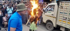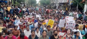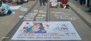 লালবাজার থেকে ডেপুটেশন দিয়ে না আসছেন, তারা রাস্তার উপর বসে পড়েন, এবং একটি কুসপুতুল পোড়ান, শুধু তাই নয়, সারা রাস্তায় তারা রং দিয়ে বিভিন্ন দাবি এবং প্রতিবাদ তুলে ধরেন।
