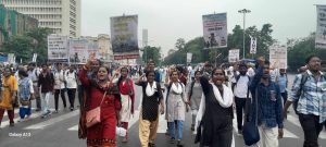 প্রায় দুই থেকে আড়াই হাজার সদস্য, বিভিন্ন ধরনের প্লাকার হাতে নিয়ে ও কুশপুতুল নিয়ে কলেজ স্কোয়ার থেকে ধর্মতলা পর্যন্ত এক বিশাল মিছিল করেন,