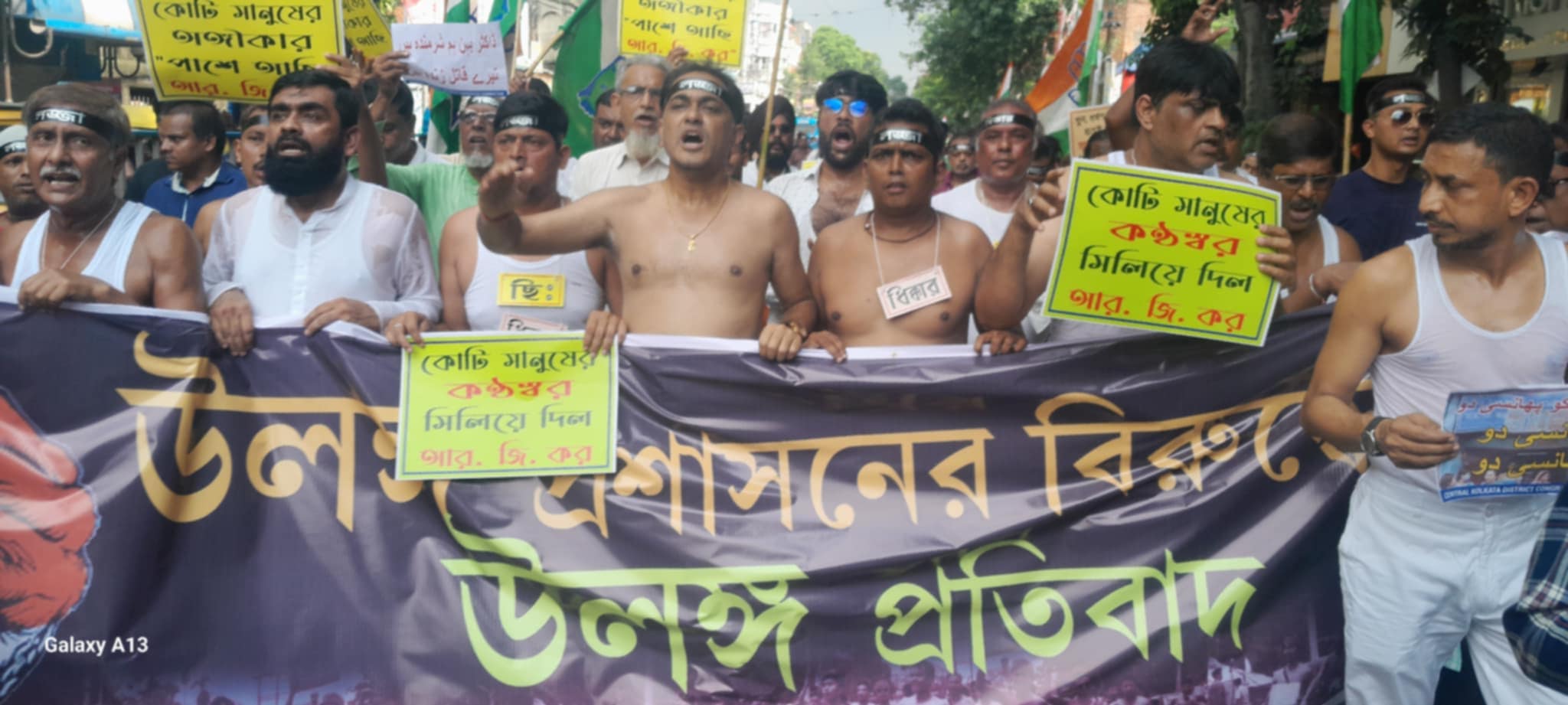 মধ্য কলকাতার জেলা কংগ্রেসের ডাকে, উলঙ্গ প্রশাসনের বিরুদ্ধে, উলঙ্গ প্রতিবাদ করলেন