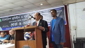 বিশেষ প্রতিনিধ : বাংলাদেশ ভূমিহীন গৃহহীন হাউজিং লিমিটেডের উদ্যোগে আন্তর্জাতিক প্রেসক্লাব ও বাংলাদেশ ন্যাশনাল নিউজ ক্লাবের সার্বিক সহযোগিতায় সাবেক প্রধানমন্ত্রী বেগম খালেদা জিয়া ও শহীদ রাষ্ট্রপতি রাষ্ট্রপতি জিয়াউর রহমানের রুহের মাগফিরাত কামনায় দোয়া ও আলোচনা সভা অনুষ্ঠিত হয়েছে। রোববার (১৮ জানুয়ারি ২০২৬) সকাল ১০টায় রাজধানীর তোপখানা রোডের বাংলাদেশ শিশু কল্যাণ পরিষদের মিলানয়তনে ঢাকা প্রেসক্লাবের সভাপতি আওরঙ্গজেব কামালের সভাপতিত্বে এই অনুষ্ঠান অনুষ্ঠিত হয়। এ সময় স্বাগত বক্তব্যে তিনি বলেন, সাবেক প্রধানমন্ত্রী গণতন্ত্রের নেত্রী বেগম খালেদা জিয়া নিজের জীবনকে পরোয়া না করে দেশ ও জনগণের জন্য কাজ করে গেছেন। আমরা তার দেখানো গণতন্ত্র রক্ষায় ঐক্যবদ্ধভাবে কাজ করব। এ সময় অনুষ্ঠানে প্রধান অতিথি হিসাবে বক্তব্য বক্তব্য রাখেন বাংলাদেশ লেবার ডেমোক্রেটিক পার্টির চেয়ারম্যান ও দৈনিক ফলাফল পত্রিকার প্রকাশক ও সম্পাদক শেখ মোস্তাফিজুর রহমান। তিনি এ সময় বলেন স্বাধীনতা ৫৪ বছর পরেও এদেশের অসহায় মানুষ তাদের নিজ অধিকার ফিরে পায়নি। দেশের এসব মানুষের অধিকার প্রতিষ্ঠায় আগামী ফেব্রুয়ারির ১২ তারিখের নির্বাচনে ব্যালট পেপারের মধ্যে মাধ্যমে প্রতিষ্ঠিত করব। এ সময় প্রধান আলোচক হিসেবে বক্তব্য রাখেন বাংলাদেশ সেন্ট্রাল প্রেসক্লাবের সভাপতি ও দৈনিক মাতৃ জগত পত্রিকার প্রকাশক ও সম্পাদক কান সেলিম রহমান। তিনি এ সময় বলেন, বেগম খালেদা জিয়া দেশ ও জাতির কল্যাণে সবসময় কাজ করে গেছেন। যে কারণে মানুষ শ্রদ্ধা ভরে আজ তাকে স্মরণ করছে। এ সময় তিনি আরো বলেন আমরা দরিদ্র মানুষের পাশে থেকে কাজ করে যাচ্ছি । অনুষ্ঠানে উদ্বোধক হিসেবে বক্তব্য রাখেন ঢাকা প্রেসক্লাবের উপদেষ্টা ও দৈনিক বাংলার ডাক পত্রিকার প্রকাশক ও সম্পাদক মোঃ মনোয়ার হোসেন । তিনি এ সময় বলেন, শহীদ প্রেসিডেন্ট জিয়াউর রহমান এদেশের জনগণের পাশে থেকে কাজ করেছেন। আশা করি তার দেখানো পথে যেভাবে সাবেক প্রধানমন্ত্রী মরহুমা বেগম খালেদা জিয়া কাজ করেছেন আশা করি ভবিষ্যতে যারা ক্ষমতায় আসবেন তাদের অনুকরণ করবেন। অনুষ্ঠানে বিশেষ অতিথি হিসেবে বক্তব্য রাখেন ফেডারেশন জার্নালিস্ট অর্গানাইজেশন বাংলাদেশের মহাসচিব এসএম হানিফ আলী। তিনি এ সময় বলেন, গণতন্ত্র রক্ষার জন্য বেগম খালেদা জিয়া দৃষ্টান্ত রেখেছেন। আমরা আশা করি আগামী জাতীয় সংসদ নির্বাচন অবাধ ও সুষ্ঠুনিরপক্ষের মাধ্যমে একটি গণতান্ত্রিক সরকার প্রতিষ্ঠিত হবে। এ সময় আরো বক্তব্য রাখেন ঢাকা প্রেসক্লাবের সহ-সভাপতি ও বাংলাদেশ ন্যাশনাল নিউজ ক্লাবের সিরিয়ার যুগ্ন মহাসচিব এ মান্নান। তিনি এ সময় বলেন, আমরা সাংবাদিক দেশ ও গণতন্ত্র রক্ষায় আমাদের অগ্রণী 