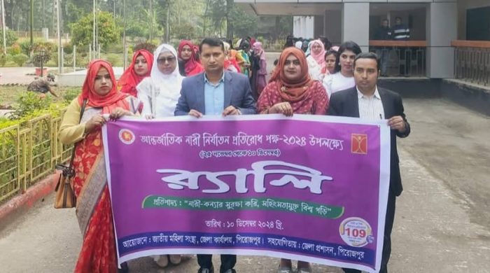 পিরোজপুরে জেলা প্রশাসনের সার্বিক সহযোগিতায় ও জেলা মহিলা সংস্থার আয়োজনে “আন্তর্জাতিক নারী নির্যাতন প্রতিরোধ -২০২৪ অনুষ্ঠিত। মঙ্গলবার (১০ ডিসেম্বর ২০২৪ খ্রি:) জেলা প্রশাসন, পিরোজপুর এর সার্বিক সহযোগিতায় ও জেলা মহিলা