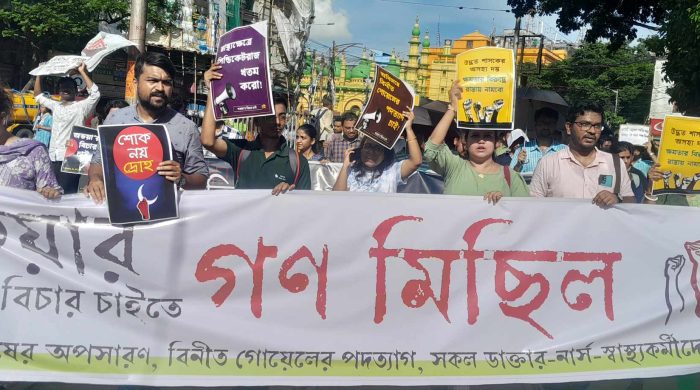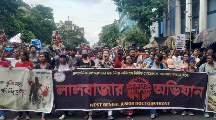 বুধবার, ওয়েস্ট বেঙ্গল জুনিয়র ডাক্তার ফন্টের ডাকে, দুপুর ১২:০০ টায় শ্যামবাজার পাঁচ মাথার মোড় থেকে ওয়াই চ্যানেল পর্যন্ত বিভিন্ন দাবি নিয়ে গণ মিছিল করলেন, আর জি করের জুনিয়র ডাক্তাররা। এবং