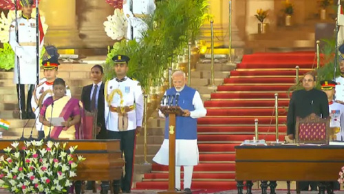 টানা তৃতীয় মেয়াদে ভারতের প্রধানমন্ত্রী হিসেবে শপথ নিলেন নরেন্দ্র মোদি। রোববার সন্ধ্যায় নয়াদিল্লির রাষ্ট্রপতি ভবনে শপথ গ্রহণ করেন তিনি। শপথবাক্য পাঠ করান রাষ্ট্রপতি দ্রৌপদী মুর্মু। মোদির পর শপথ নেন ৭২ আরো পড়ুন
