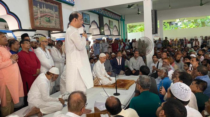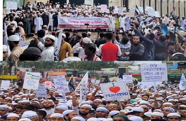 মহানবী হযরত মুহাম্মদ (সা.)-কে নিয়ে ভারতীয় পুরোহিতের কটূক্তি ও ধর্মীয় অনুভূতিতে আঘাতের প্রতিবাদে রাজধানীতে বিক্ষোভ মিছিল সমাবেশ করেছে বৈষম্যবিরোধী কওমি ছাত্র ঐক্যপরিষদ ও বাংলাদেশ খেলাফত মজলিস। শুক্রবার জুমার নামাজ শেষে