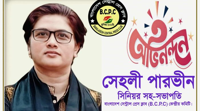 নিজস্ব প্রতিবেদক: সময়ের জনপ্রিয় মানবাধিকার নেতা ও হিউম্যান এইড ইন্টারন্যাশনালের প্রতিষ্ঠাতা মহাসচিব সেহলী পারভীন বাংলাদেশ সেন্ট্রাল প্রেস ক্লাব (B.C.P.C)-এর কেন্দ্রীয় কমিটির সিনিয়র সহ-সভাপতি (Senior Vice President) হিসেবে মনোনীত হয়েছেন। সমাজসেবা,