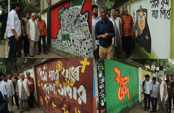 সাম্প্রতিক জুলাই-আগস্ট বিপ্লবের সময় তরুণ বিপ্লবীদের আঁকা গ্রাফিতি দেখতে ঢাকা বিশ্ববিদ্যালয় (ঢাবি) এলাকা পরিদর্শন করেছেন বর্তমান সরকারের প্রধান উপদেষ্টা ড. মুহাম্মদ ইউনূস। বুধবার ছাত্র-জনতার গণঅভ্যুত্থানের সময় আঁকা গ্রাফিতি দেখতে ঢাকা